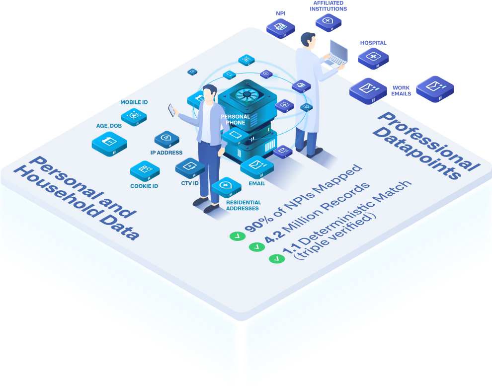 Having Professional, Personal and Household level data allows us to “talk to” and match doctors to their consumer personas on ad networks and channels.